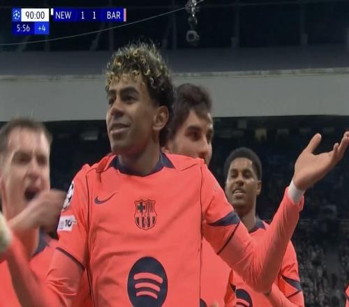 歐冠1/8決賽首回合,巴塞羅那客場(chǎng)1-1戰(zhàn)平紐卡斯?fàn)柭?lián),亞馬爾在補(bǔ)時(shí)階段罰入絕平點(diǎn)球,至此,亞馬爾19歲之前歐冠已打...