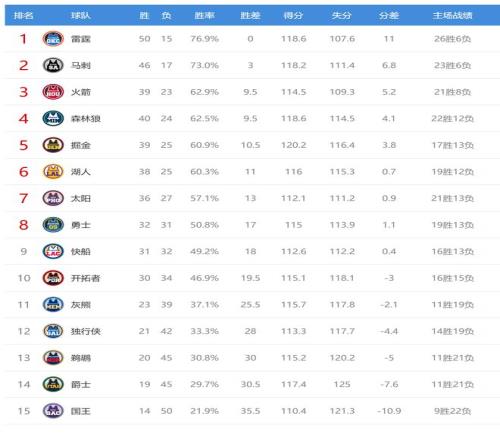 今日比賽后火箭、森林狼排名互換,其他西部球隊排名不變。