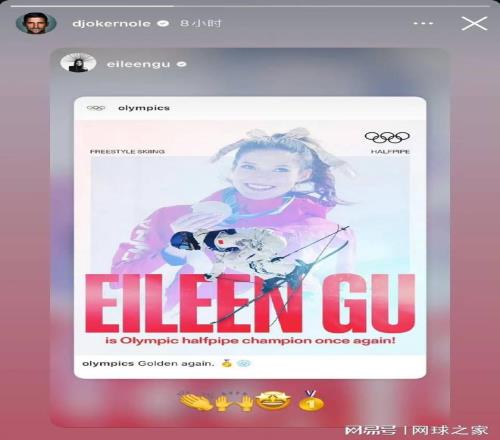 谷愛(ài)凌奪金后,社交媒體上瞬間被祝福聲淹沒(méi)。最引人注目的莫過(guò)于網(wǎng)壇天王德約科維奇的親自下場(chǎng)。這位手握24個(gè)大滿(mǎn)貫冠軍的傳奇人物在Instagram上轉(zhuǎn)發(fā)了谷愛(ài)凌的奪金海報(bào),并配文送上誠(chéng)摯祝賀。有網(wǎng)友調(diào)侃:“這是GOAT(歷史最佳)之間的惺惺相惜。”
