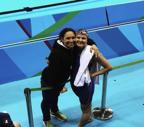 2016年里約熱內(nèi)盧奧運(yùn)會(huì)女子200米仰泳決賽后,考文垂與布拉金擁抱。(圖/Instagram考文垂賬戶)