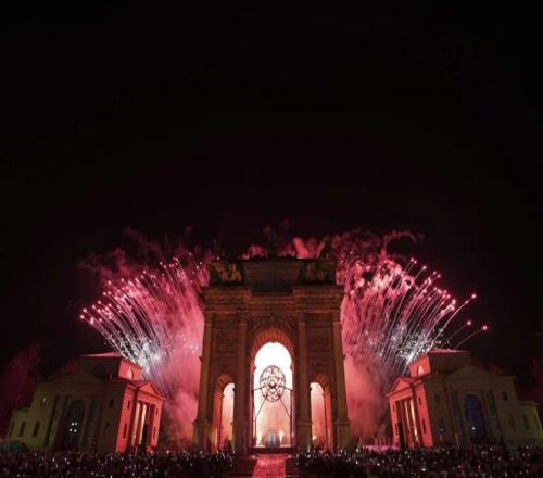2月6日,在米蘭和平拱門,主火炬被點(diǎn)燃。新華社記者 孫非 攝