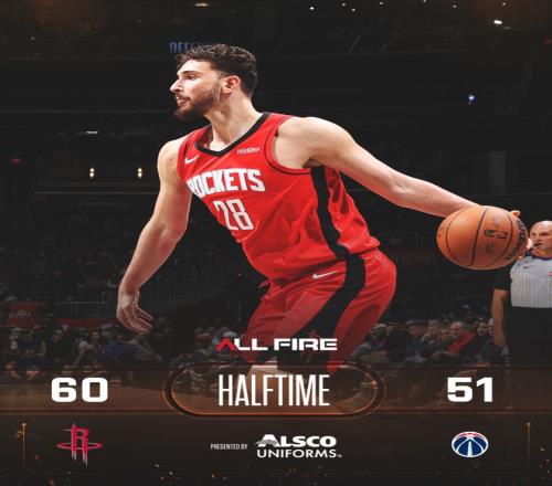 火箭隊的申京上半場得到19分,杜蘭特得到14分,謝潑德得到10分和4次助攻;奇才隊的庫里巴利得到14分,喬治得到9分。