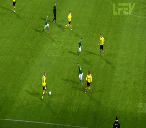 兩人看似都是前腰,都活動在中鋒的身側,而且也都可以活動到邊路,但羅伊斯的身體天賦明顯好于布魯諾,這不是在說羅伊斯的對抗多好,而是體現(xiàn)在他的帶球速度明顯更快,而且在高速向前的過程中,羅伊斯依然能夠穩(wěn)定處理球。