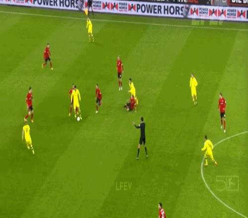 所以,布魯諾在前腰位置上的優(yōu)勢從來不是能夠站住10號位,在對手核心區(qū)域內打出精妙傳球或射門,而是具備脫離前腰位置的職責靈活性和大幅跑動能力,這才是他在這四場對陣中游球隊的比賽中,可以輸出威脅的方式都出現(xiàn)在邊路或跑動路上的原因: