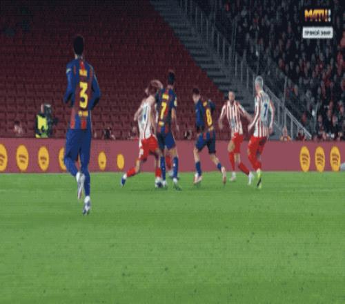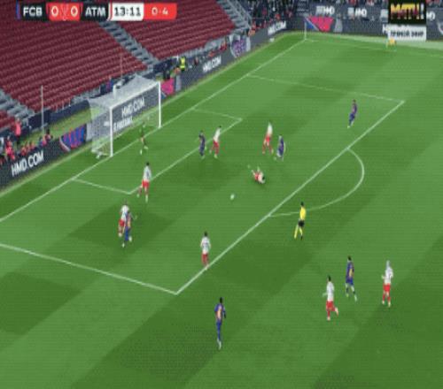 比賽一開場,巴薩就把節(jié)奏拉到極限。第14分鐘,拉菲尼亞搶斷后的低射偏出,吹響進(jìn)攻號角;隨后費(fèi)蘭·托雷斯的彈射、亞馬爾外圍勁射被穆索飛身撲出,藍(lán)紅軍團(tuán)的攻勢一浪高過一浪,不斷沖擊著床單軍團(tuán)的后防,短短20幾分鐘,巴薩轟門高達(dá)7次之多;西蒙尼直接扔出大巴車,堅(jiān)決打反擊。