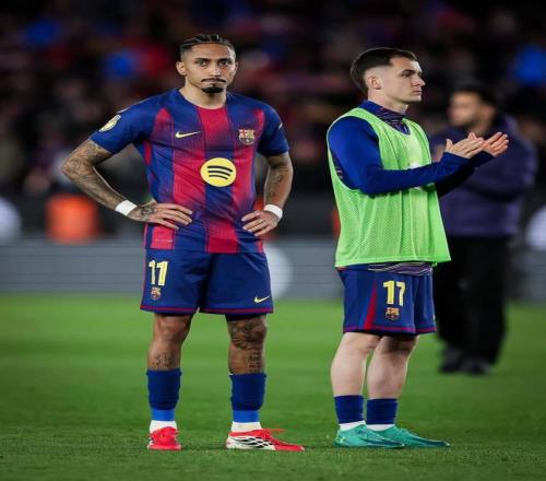 補(bǔ)時(shí)階段,佩德里帶球殺入禁區(qū)被普維爾放倒,裁判判罰點(diǎn)球。拉菲尼亞冷靜命中,巴薩2-0,總比分來到2-4。藍(lán)紅軍團(tuán)在諾坎普創(chuàng)造奇跡看來有戲。