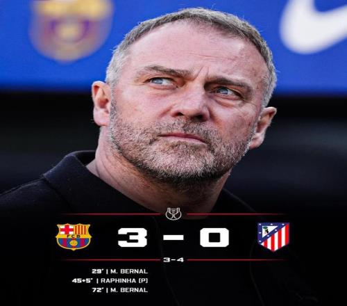 隨后藍(lán)紅軍團(tuán)的攻勢更猛,先是亞馬爾在禁區(qū)內(nèi)倒地,裁判沒有給點(diǎn);隨后拉什福德回敲,赫拉德-馬丁怒射擦橫梁而出,最終比分定格在巴薩3-0馬競,藍(lán)紅軍團(tuán)雖贏下比賽,卻輸?shù)粝盗匈?。總比?-4,止步半決賽,衛(wèi)冕夢想破滅。