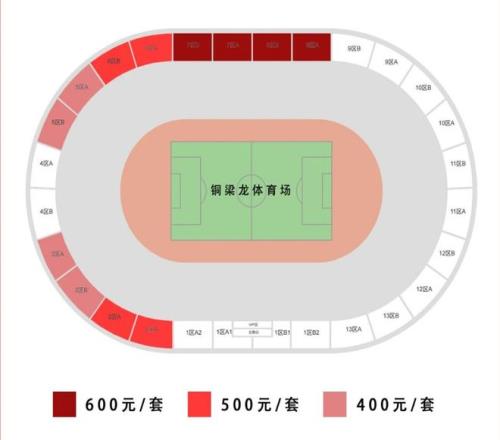 銅梁龍體育場散球迷套票價格及相關(guān)區(qū)域。 重慶銅梁龍俱樂部供圖