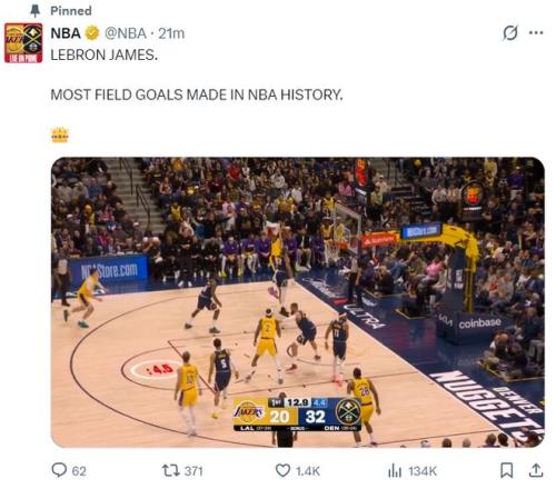 首節(jié)詹姆斯4中3拿到6分3籃板1蓋帽,他的運(yùn)動戰(zhàn)進(jìn)球已經(jīng)追平賈巴爾15837個,還差一個運(yùn)動戰(zhàn)進(jìn)球就超過賈巴爾。