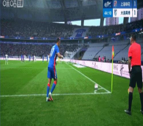 第44分鐘,高天意開出右側(cè)角球,新外援蓋伊門將搶點(diǎn)頭球破門,申花2-1反超英博了!