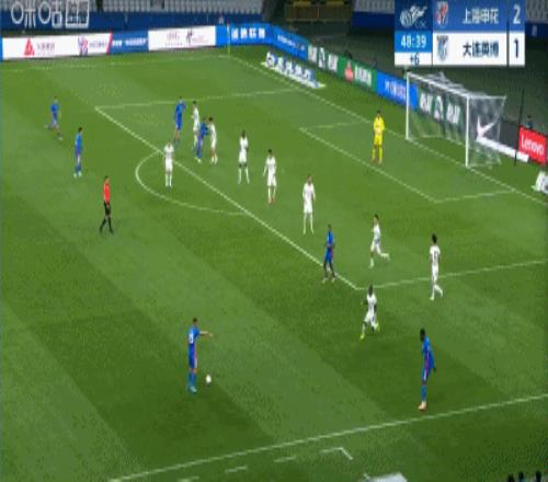 第45+4分鐘,申花不依不饒,禁區(qū)內(nèi)馬馬杜防地高空球冒頂,拉唐一腳推射再下一城,申花3-1領(lǐng)先大連英博!