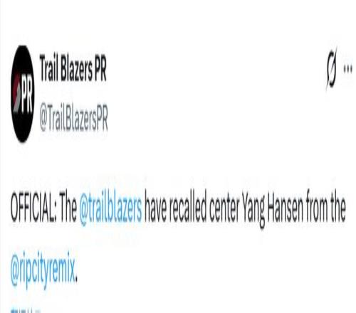 開拓者官宣召回楊瀚森!今日G聯(lián)賽砍15+9+5明日或出戰(zhàn)步行者