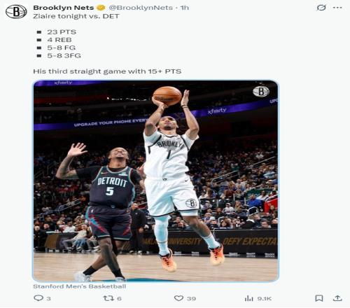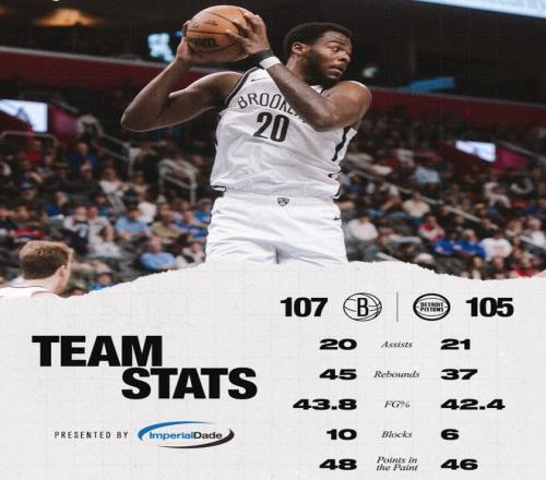 2.活塞在領(lǐng)先23分的情況下被東部倒數(shù)第二的籃網(wǎng)逆轉(zhuǎn);