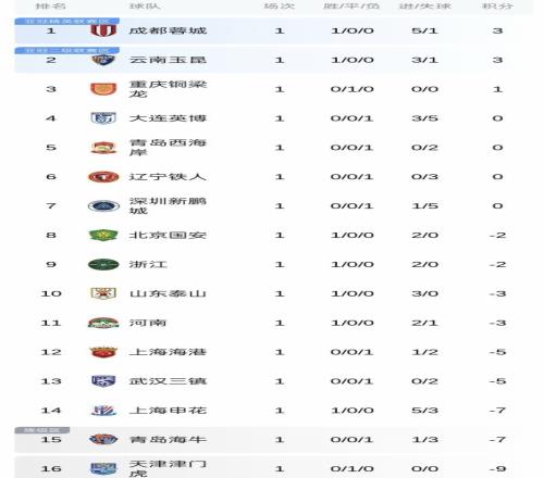 隨著國安20完勝三鎮(zhèn),中超首輪收官!最新積分榜:泰山跌至第10