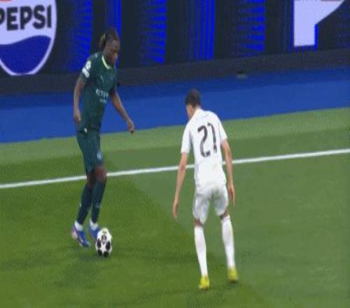 就像比賽第19分鐘這次進攻,曼城從右至左,和皇馬在中路進行球權爭奪的時候,是貝爾納多-席爾瓦打出了一腳遠射: