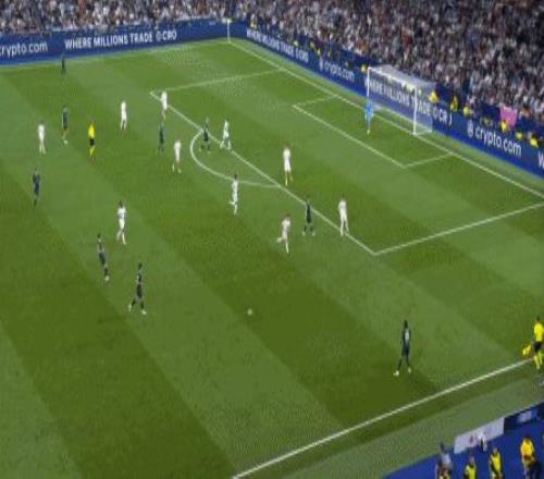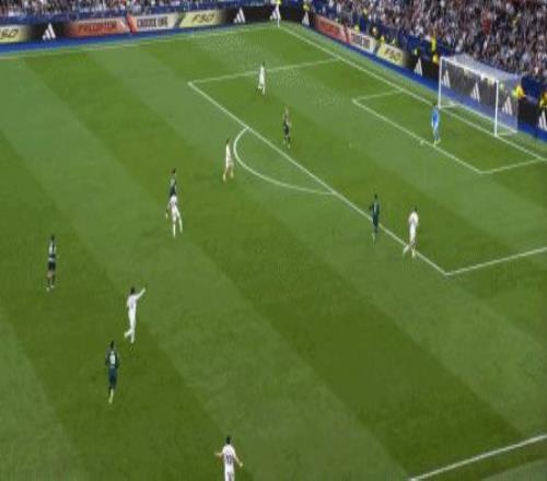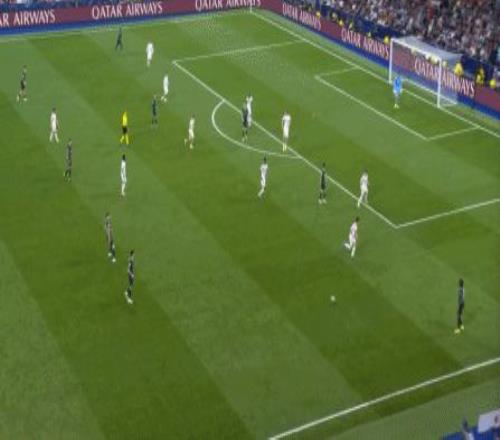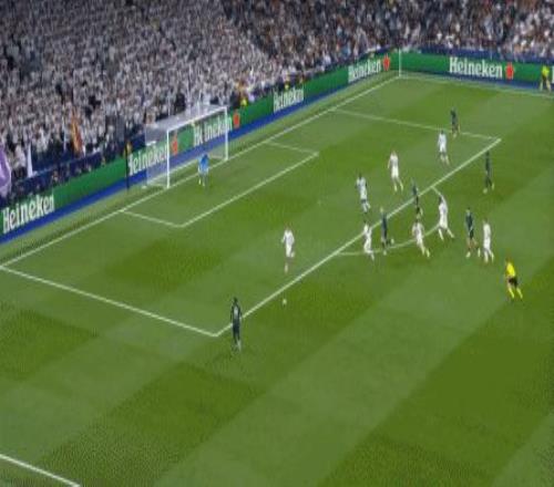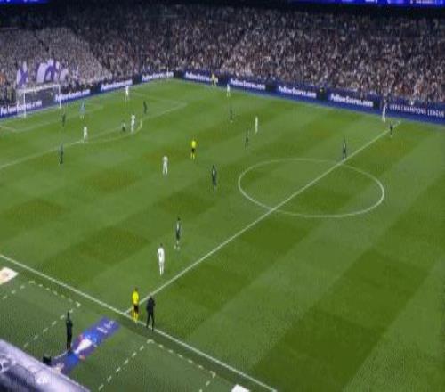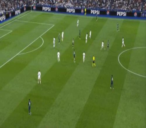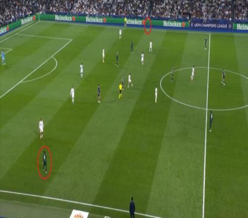 所以在下半場,皇馬的表現(xiàn)依然穩(wěn)健,還是通過人數(shù)足夠的防守來構筑基礎,在此之上進行次數(shù)有限,但威脅不小的反擊,效果依然不錯: