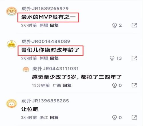 也正因如此,在本場賽后,不少球迷紛紛吐槽:“哥們兒你絕對改年齡了”、“經(jīng)典18歲打上CBA,31、32歲tm快退役了”、“最水的MVP沒有之一”、“真的退役吧,防不住打不進就別浪費別人的機會了”、“一如既往的穩(wěn)定,上來球隊就輸分”......