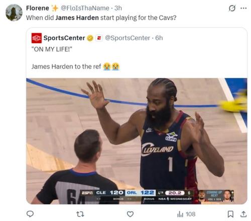 在終場(chǎng)前20.2秒,哈登與班凱羅爭(zhēng)奪一個(gè)球權(quán),裁判判魔術(shù)球權(quán),哈登說(shuō)我們的球,我們沒有碰,我用我的生命發(fā)誓,我用我的生命發(fā)誓,只可惜騎士沒有挑戰(zhàn)權(quán)了,裁判還是給了魔術(shù)球權(quán),隨后貝恩就命中了一個(gè)恐怖的漂移三分球,騎士功虧一簣。