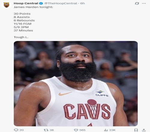 賽后騎士主帥阿特金森談到哈登的表示:他非常出色,這就是巔峰時(shí)期的哈登,他開場(chǎng)甚至換防1-5號(hào)位,哈登在進(jìn)攻端還能改變他們的防守策略,如果他們不采取包夾哈登的單打就可以讓他們付出代價(jià),哈登的表現(xiàn)無(wú)可挑剔,他加盟我們后很快就融入了這個(gè)團(tuán)隊(duì)。