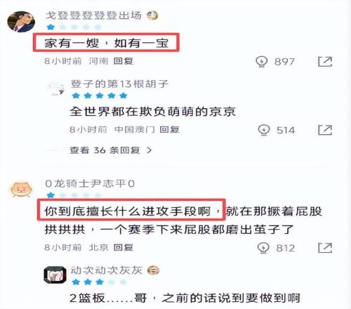 賽后,某籃球論壇上,球迷忍不住紛紛吐槽:“家有一嫂,如有一寶”、“你到底擅長什么進(jìn)攻手段啊,就在那撅著屁股拱拱拱,一個(gè)賽季下來屁股都磨出繭子了”、“這就是全明星?”.....