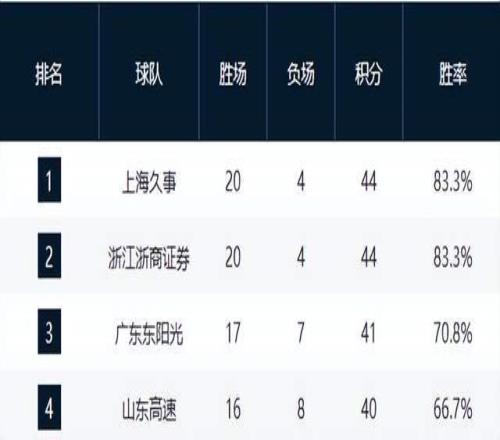 上海反超廣廈升至第1,廣東3連敗第3,山東守住前4,遼寧跌出前10