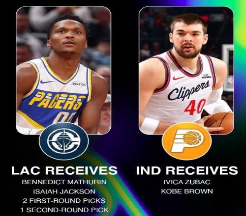 交易回顧:快船送出祖巴茨和科比-布朗,2換5得到馬瑟林、以賽亞-杰克遜、2個首輪、1個次輪。