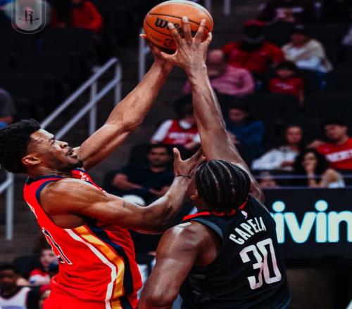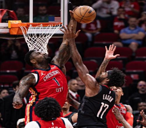 第二節(jié)火箭這邊謝潑德挺身而出連續(xù)命中三分,鵜鶘的瑪特科維奇連續(xù)大帽杜蘭特兩個讓鵜鶘很漲士氣一度縮小到3分,但杜蘭特隨即命中三分,阿門突破暴扣火箭再度拉開到10分。錫安開始持球突破造殺傷,穆雷三分穩(wěn)定局勢,上半場打完火箭領先8分。