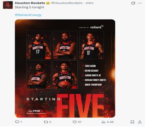 全場比賽,杜蘭特32分6籃板5助攻,阿門23分12籃板8助攻,謝潑德18分5籃板3助攻,史密斯16分5籃板。