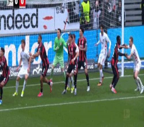第15分鐘,法蘭克福左側角球,拉馬伊單拳將球擊出