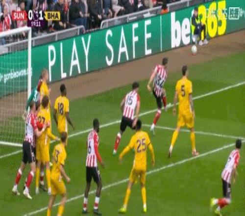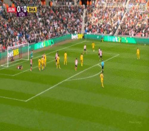 第57分鐘,打破僵局!明特小角度射門打進(jìn),桑德蘭0-1布萊頓