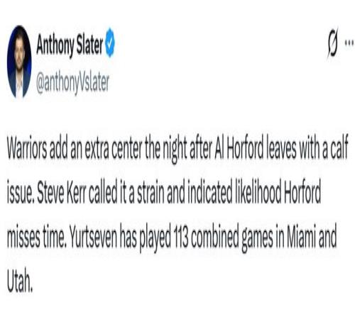 老將中鋒霍福德因右小腿受傷,預計將缺席多場比賽。據(jù)勇士隊記Slater透露,39歲的霍福德被確診為比目魚?。ㄐ⊥龋├瓊?,塞斯-庫里則是左內(nèi)收肌拉傷。除波斯特出戰(zhàn)成疑外,上述所有球員都將缺席周一對陣尼克斯的比賽。
