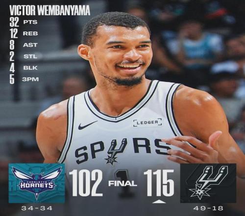 文班亞馬復(fù)出!165分57板19帽!姚明之后第一人