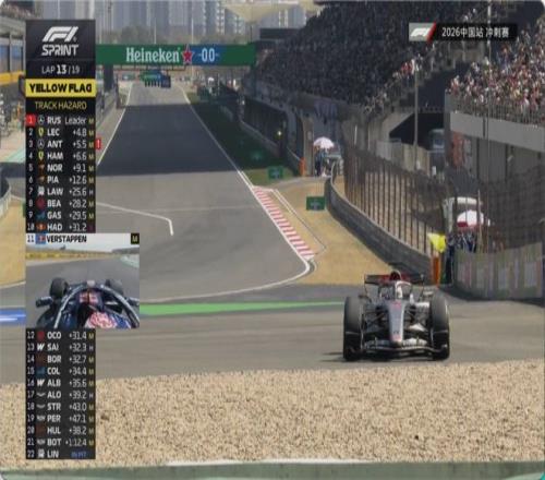 隨著五盞紅燈熄滅,2026賽季F1中國站沖刺賽正式開始!安東內利起步出現失誤,跟上一場比賽一樣。去年中國站的沖刺賽冠軍漢密爾頓迅速上到第二位,諾里斯守在第三。