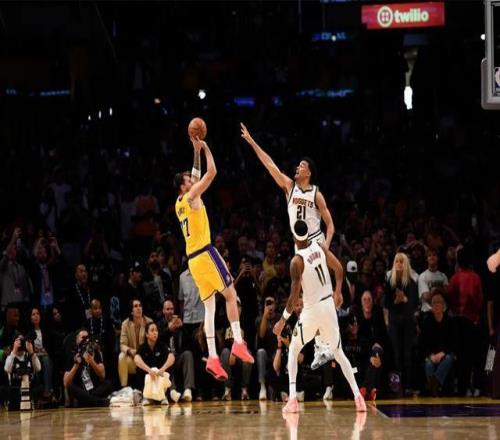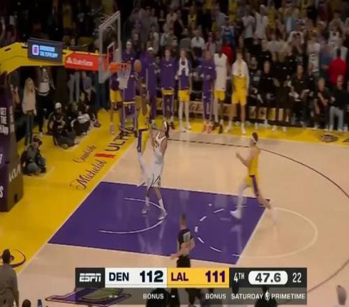 第四節(jié)比賽,掘金的三分手感徹底打開,單節(jié)15中7的三分,其中在兩側(cè)底角就進了6個。好在湖人這邊也能續(xù)上火力,沒有徹底崩盤,里夫斯末節(jié)14分讓湖人等到了東契奇的復蘇。東契奇之后的三分+三次罰球,讓比賽重新回到同一起跑線。