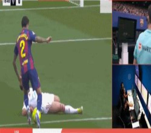 第18分鐘,坎塞洛禁區(qū)內(nèi)變向過(guò)人,擊中何塞-安赫爾的手臂,裁判回看VAR再度判罰點(diǎn)球。