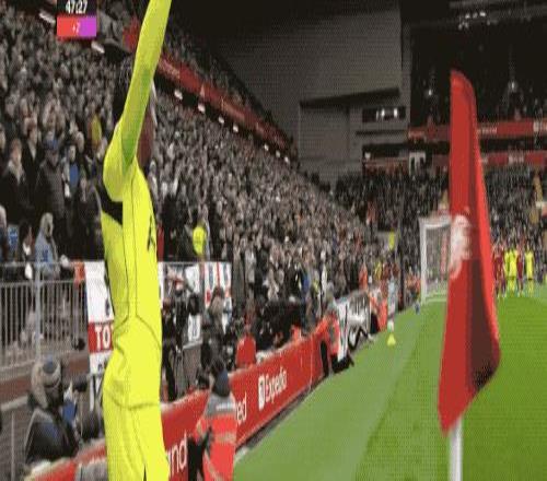 第18分鐘,利物浦獲得前場任意球,索博斯洛伊直接射門,皮球繞過人墻,維卡里奧雖然碰到皮球,怎奈力量太大,無法阻擋皮球入網(wǎng)。