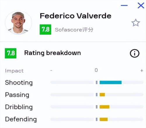 本場比賽,巴爾韋德在第44分鐘打進(jìn)一球,幫助皇馬擴(kuò)大領(lǐng)先優(yōu)勢。但進(jìn)球只是他全場出色發(fā)揮的一部分。