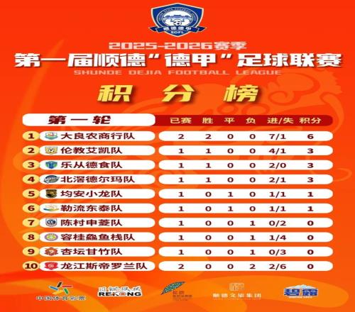 威水!順德“德甲”循環(huán)賽第一輪積分榜、射手榜來了