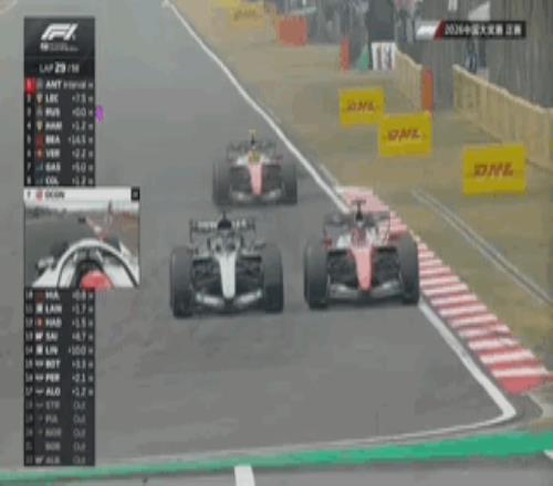 拉塞爾先后超越勒克萊爾和漢密爾頓,在第4圈時(shí)已經(jīng)來(lái)到了隊(duì)友安東內(nèi)利身后排名第二。