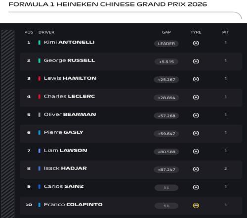 隨后的比賽沒有任何變數(shù)!安東內(nèi)利在2026年的中國(guó)大獎(jiǎng)賽第一個(gè)沖過(guò)終點(diǎn),創(chuàng)造F1歷史的新紀(jì)錄!成為史上最年輕的桿位奪冠車手!拉塞爾為梅奔實(shí)現(xiàn)一二帶回!法拉利雙雄漢密爾頓和勒克萊爾分列第三和第四。