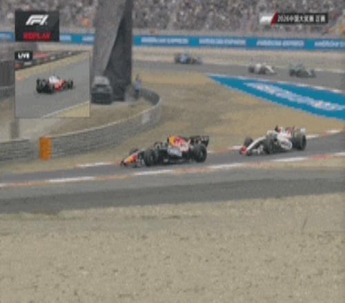 第1圈,哈賈爾在6號(hào)彎出彎時(shí)出現(xiàn)失誤飛出場(chǎng)外,身后的比爾曼差點(diǎn)與其相撞。