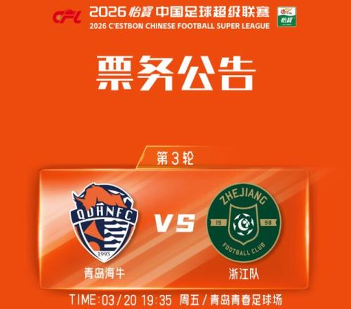 3月20日(星期五)19:35,在2026賽季中超聯(lián)賽第3輪的一場關(guān)鍵爭奪中,青島海牛坐鎮(zhèn)主場青島青春足球場,迎戰(zhàn)浙江隊。賽前,青島海牛發(fā)布了此役的票務(wù)公告。