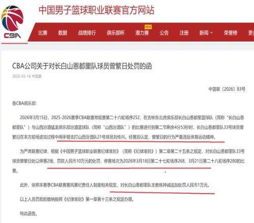 同時(shí),吉林隊(duì)主教練鐘誠負(fù)有管理責(zé)任,對他也是進(jìn)行了追加處罰,罰款10000元。