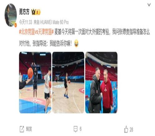 麥基今天將第一次面對(duì)大外援的考驗(yàn),張德貴指導(dǎo)賣(mài)關(guān)子不肯說(shuō)如何限制麥基。