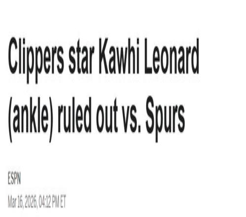 無緣戰(zhàn)舊主!萊昂納德因踝傷今日缺戰(zhàn)馬刺再歇3場(chǎng)將失去評(píng)獎(jiǎng)資格