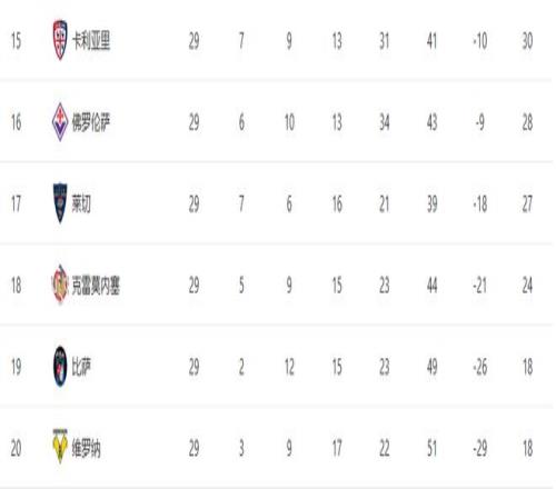 一場大勝,讓佛羅倫薩順利帶走3分,也暫時遠離了積分榜下半?yún)^(qū)的壓力。反觀克雷莫內塞,球隊已經(jīng)遭遇聯(lián)賽4連敗,目前排名倒數(shù)第三,保級形勢愈發(fā)嚴峻。