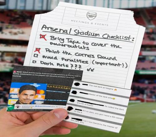 在“黑暗藝術(shù)”下,還附上了一則“洋蔥新聞”,內(nèi)容是阿爾特塔希望阿森納在全黑環(huán)境中進(jìn)行訓(xùn)練,以便他的球員能夠發(fā)展出捕食者級別的球感追蹤能力。然后就是“評論區(qū)”,阿森納球迷在熱烈討論:“真正的黑暗藝術(shù)開始了”、“黑暗藝術(shù)大師”、“藝術(shù)自有其理由”、“這叫黑暗藝術(shù)”、“藝術(shù)如此黑暗,你需要第六感”等等。