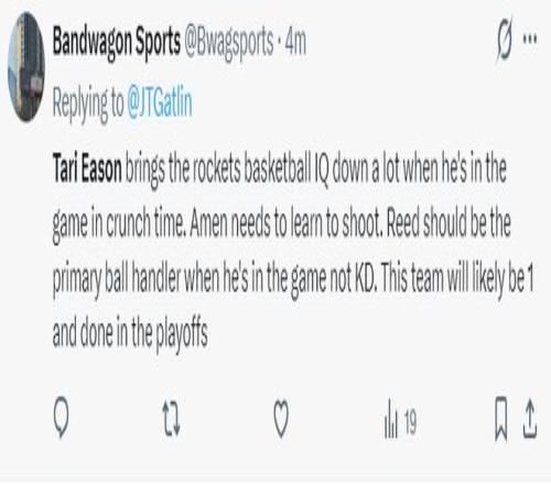 火箭博主:伊森在場一直給火箭負面的影響,他的先發(fā)席位應該讓給謝潑德。