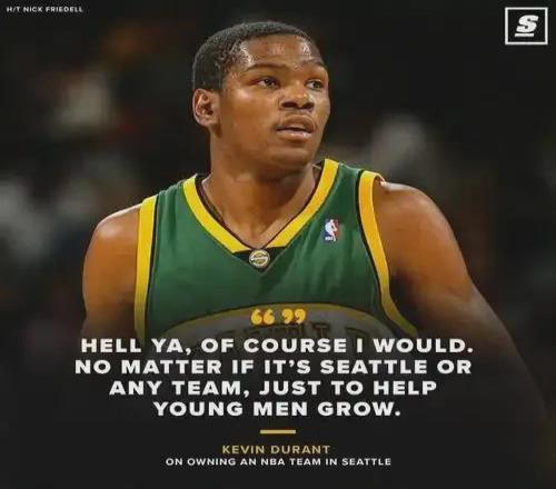 話說杜蘭特本人不止一次在公開場合呼吁西雅圖能夠重新?lián)碛幸恢BA球隊(duì),甚至他愿意回歸無論是以何種身份。