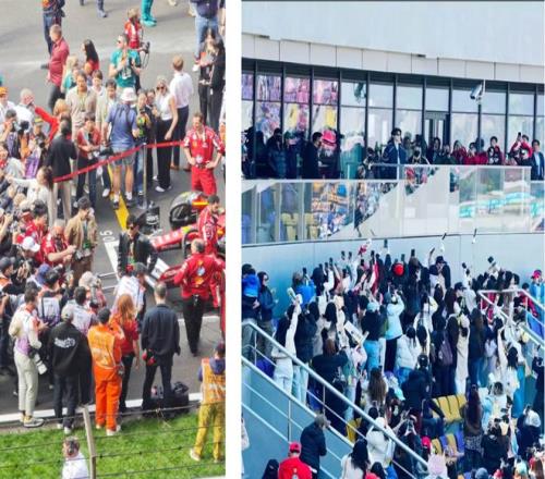 圍場外的人流量,因為 F1 今年巨高的熱度以及諸多明星的到場,暴漲到了夸張的數(shù)量級。喊車手名字的、喊哥哥名字的以及在停車場看車展的人們?nèi)紨D在了一起,甚至發(fā)生了人群沖卡入場的事。